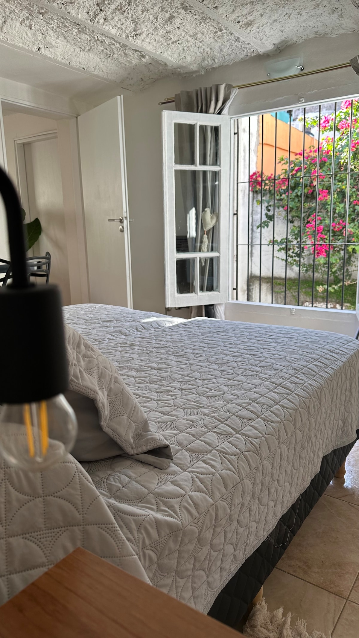 Aftengdu áhyggjur þínar í þessu rúmgóða og friðsæla rými. Nálægt börum, vinsælum veitingastöðum, verslunarmiðstöðvum, rútum og metrum. Þar er allt sem þú þarft fyrir fullkomna dvöl: - Frábært þráðlaust net -Sommier queen -Loftræsting -TV '43 -Sofa - Borðstofuborð/vinnurými -Örbylgjuofn, rafmagns anafes pava og rafmagns brauðrist -Kæliskápur -Amplio walk-in closet with guarded space - Sérbaðherbergi með rúmfötum - Verönd með borði og stólum til að njóta útivistar