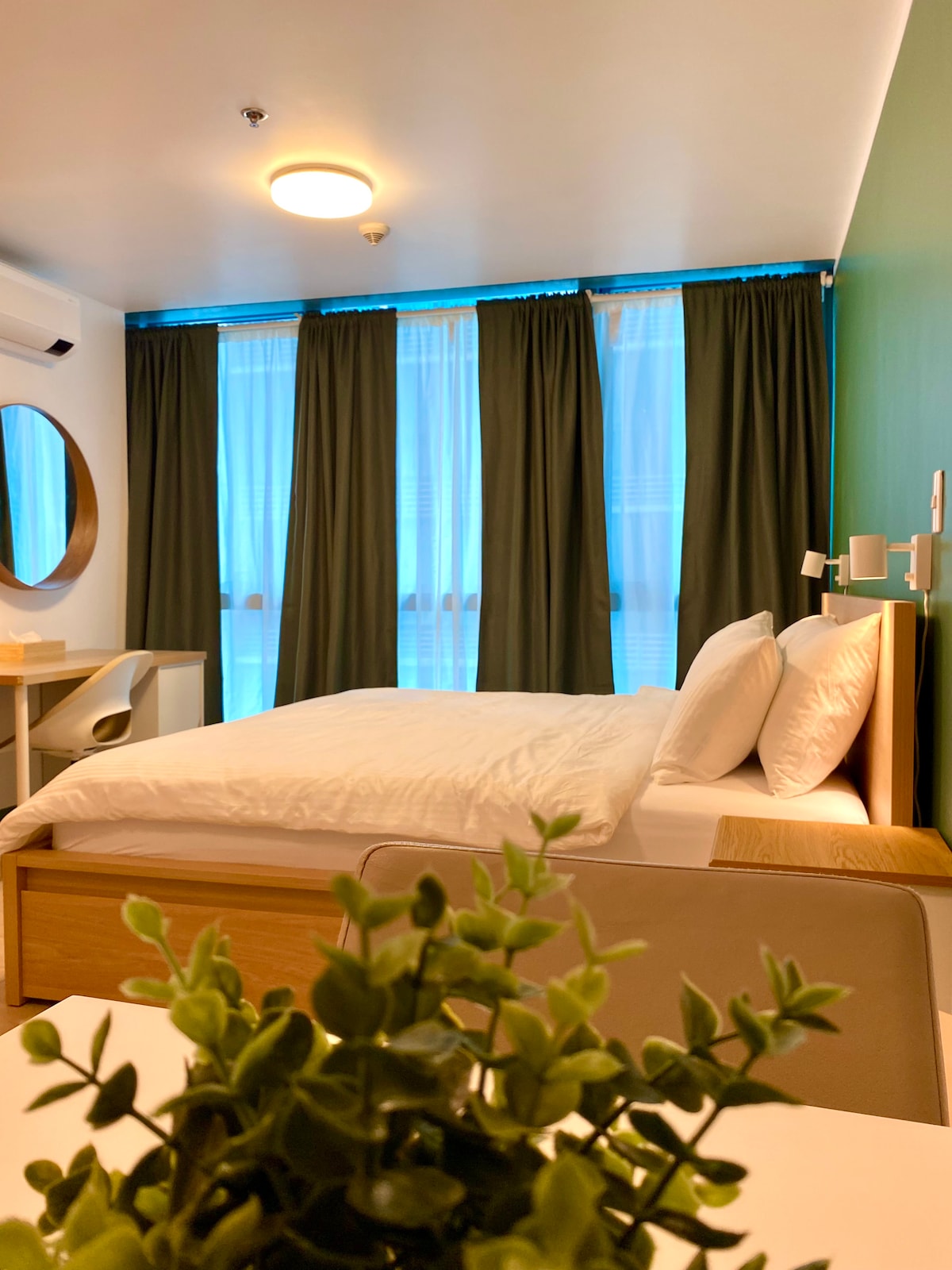 Escape in your own verdant nook when you book this tropical-Scandi inspired unit! Designed to mix relaxation and productivity, this unit allows you to relax and unwind in the midst of the hustle and bustle of Uptown BGC. The amenities in the building (pools, gym, daycare and play area) are quite a spectacle themselves - but if you miss the city views, Landers Supermarket, Uptown Mall and Uptown Parade are just around the corner. Let this stay-cation give you the refresh you need!