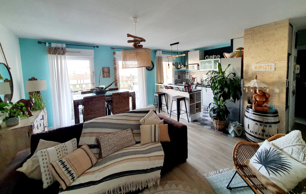** HÚSGÖGNUM FERÐAMANNA 2 STJÖRNUR ** ** BÓKANIR AÐEINS FRÁ LAUGARDEGI TIL LAUGARDAGS OG Í AÐ MINNSTA KOSTI 7 DAGA Í JÚLÍ OG ÁGÚST** Íbúð á hæð með 1 svefnherbergi, 1 baðherbergi með ítalskri sturtu, 1 eldhúsi, 1 stofu, 1 einkaverönd með plancha... Möguleiki á að bóka nærliggjandi íbúð (30 fermetrar, 3 manns) á sama tíma en það fer eftir framboði... Sjá þennan hlekk: https://www.airbnb.com/h/appartementlaurentondres1