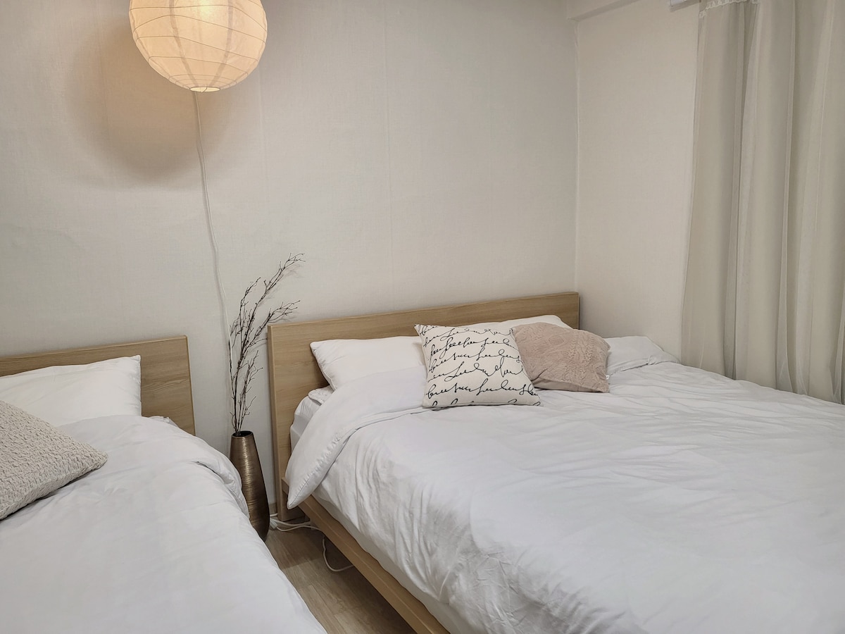 Halló. Þetta er HWI-JIN, notaleg gisting eins og hótel. Rúmar allt að 4 manns (2 rúm í queen-stærð) Vinir, fjölskylda, pör, ferðalangar sem eru einir á ferð. Ég vona að þú eigir ánægjulega og afslappandi dvöl heima hjá mér. Inn- OG útritun Innritun kl. 17:00 Útritun kl. 13:00