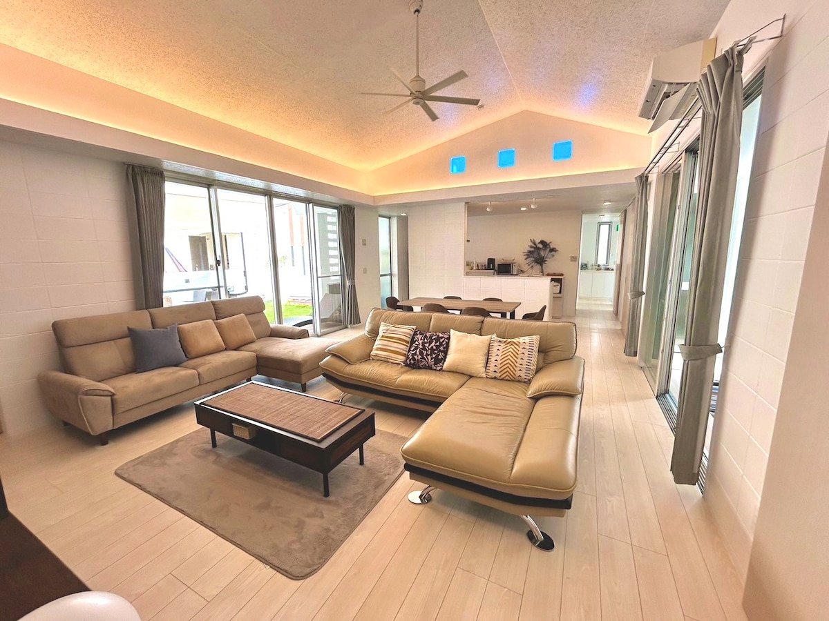 ラナカイハウス ビーチ3分、青の洞窟5分、160㎡オーシャンビュー 16名迄 BBQ ワーケーション