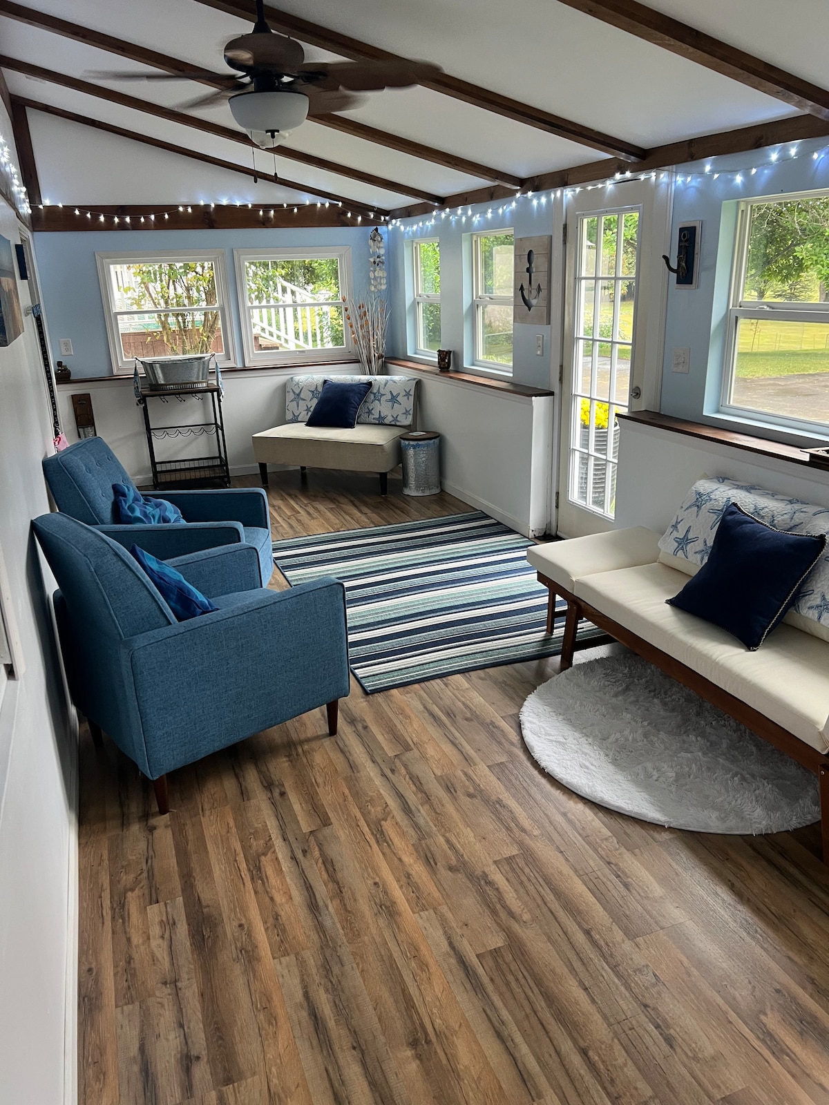 Frágenginn göngukjallari, sérinngangur 1 hjónaherbergi (2 rúm, 1 tveggja manna, 1 hjónarúm) Sameiginleg stofa Fullbúið eldhús Einkabaðherbergi Björt sólstofa til að slaka á Leiksvæði (pílar, spil, borðspil) Rólegt aðgengi að bakgarði með eldstæði og pergola (sameiginlegt rými). Heitur pottur Fullkomið fyrir vinnuferðir, hjúkrunarfræðinga á ferðalagi, háskólaheimsóknir/foreldrahelgi, helgarferðir, fjölskylduheimsóknir eða stangveiði í Upstate NY, öruggt og nálægt áhugaverðum stöðum á staðnum! Staðsett hinum megin við Oswego ána!