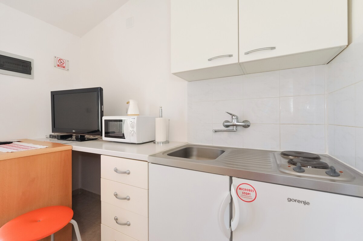 Þetta friðsæla stúdíó, sem rís hátt á bröttum klettum, er í 30 m hæð yfir sjávarmáli og er fullkominn staður fyrir frí sem þú þarft á að halda. Það er umkringt gróðursælu svæði í Dubrava-Hanzine og býður upp á lúxusupplifun - útsýni yfir Pag-flóa og fjallgarð Velebit, fyrir einn. Beach Rozin Bok 50m frá íbúðinni. Bílastæði, loftræsting, grill utandyra og sólsturta fyrir utan er innifalin. SUP og kajak eru í boði meðan á dvöl í íbúðinni stendur.