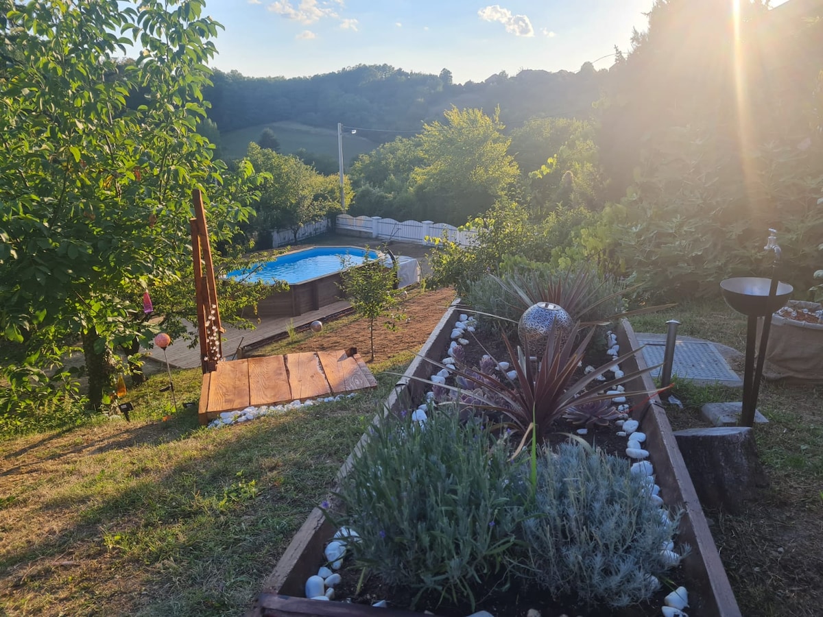 - Fjallavilla með einkasundlaug með upphitun og jacuzzi - Sundlaugarárstími: 1.5.-15.10 -Jaccuzzi-tímabil: 15.10.-1.5. - Einkagarður, umkringdur aldingarði - 3 svefnherbergi með 2 hjónarúmum og 2 einbreiðum rúmum. Auk þess eru tvö auka tvíbreið rúm í boði fyrir allt að átta gesti. - tvö baðherbergi með sturtum - Svalir með útihúsgögnum og grillgrilli með víðáttumiklu fjallaútsýni - viðararinn í stofunni - Loftræsting - Fullbúið eldhús, þar á meðal kaffivél - Ókeypis bílastæði á staðnum - Þráðlaust net og sjónvarp innifalið - Rúmföt, handklæði og snyrtivörur í boði - Göngustígar, veitingastaðir og náttúrulegir heitir hverir í nágrenninu - Einkagarður, umkringdur aldingarði Áhugaverðir staðir: - Kuzminec-foss og -hellir (10 mín. ganga) - Mihovljan kirkja og miðbær (30 mín. ganga, 5 mín. akstur) - Neanderdalsafnið (15 mínútna akstur) - Trako an Castle (20 mínútna akstur) Húsreglur: - Innritunartími er kl. 16:00 og útritun kl. 10:00. - Reykingar eru ekki leyfðar. - Við eignina eru ókeypis bílastæði. - Gæludýr eru leyfð í eigninni.