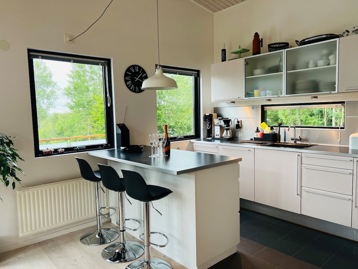 Þetta nýuppgerða og dæmigerða sænska hús er staðsett í miðju fallegu og rólegu forrest við hliðina á stóru vatni. Þetta er fullkominn staður til að njóta sænska sumarsins og vorsins með löngum gönguferðum, sundi í vatninu, fallegum kvöldum og skemmtilegum ferðum. Á kaldari mánuðunum er frábært að slaka á við arininn, njóta snjósins eða elda í vel búnu eldhúsinu okkar. Njóttu fjölskyldufrísins, farðu í rómantíska paraferð, farðu á heimili eða slakaðu á hér.