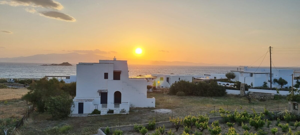 Falleg og mjög þægileg villa fyrir framan stórkostlega strönd! Tilvalið orlofshús, staðsett í rómantísku horni Mikri Vigla - kosin besta orlofsströndin á Naxos….! Húsið er rúmgott (120 fm / 1290 fermetrar) og fínhannað og veitir einstakt jafnvægi náttúru og þæginda, kyrrðar og skemmtunar. Mikri Vigla er meðal vinsælustu áfangastaða um allan heim fyrir vatnaíþróttir, strandrassa, fjölskyldur og náttúrufíkla…. (sérstakt skráningarnúmer 392845)