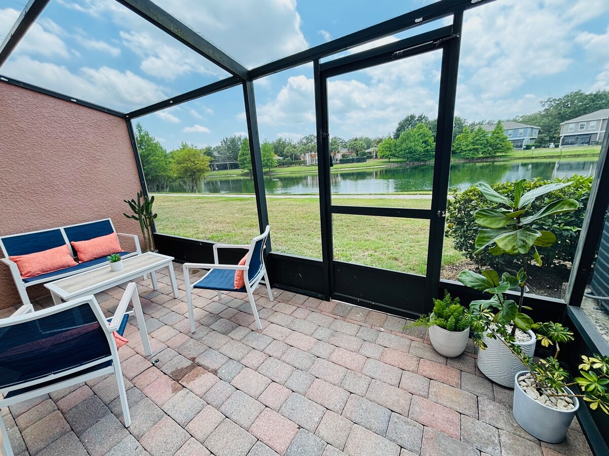 Velkomin í einkavilluna þína! Þetta vel búna bæjarhús er í aðeins 15 mínútna fjarlægð frá Disney-áhugaverðum stöðum með 3 svefnherbergjum og 2,5 baði. Skimuð einkaverönd bætir við skemmtunina í þessu hliðholla samfélagi. Farðu í göngutúr um grænna hverfið eða njóttu þæginda klúbbhússins: útisundlaug, volleyball-völlur, körfuboltavöllur, líkamsræktarsalur og kvikmyndasalur. Þessi villa er einkarekin og þægileg. Þar er að finna öll þægindin sem þú býst við, þar á meðal rúmföt. Þú munt vilja snúa aftur í næsta frí!