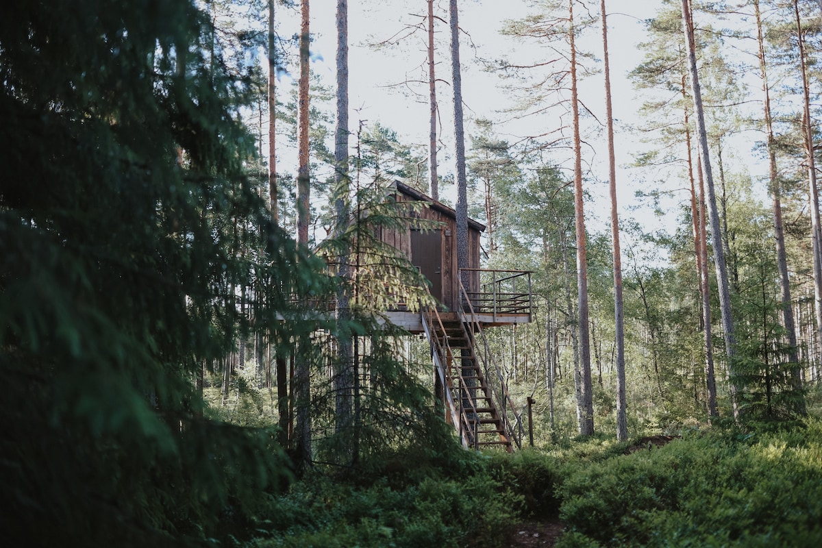Trädhus i den småländska skogen