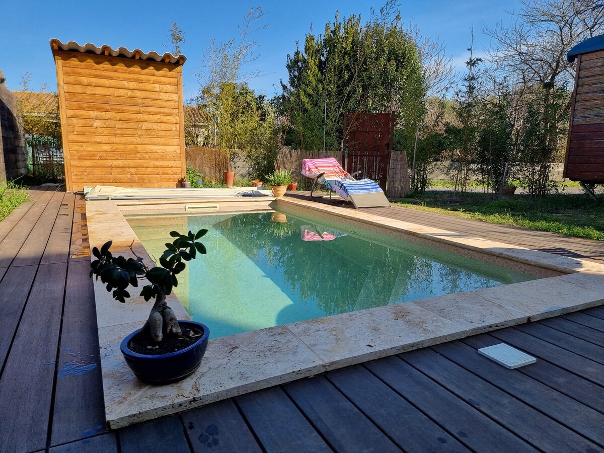 Heimili okkar „L 'Olivier“, sem er ætlað 2 fullorðnum og 2 börnum, algjörlega endurnýjað, hefur verið hannað til að láta því líða eins og heima hjá sér. Náttúrulegar og mjúkar innréttingar, einkaverönd, þægileg gistiaðstaða, gæðaþægindi og gestgjafar í boði. Eignin okkar er búin fallegri öruggri sundlaug, 6 manna heilsulind, eldstæði, stórum garði og einkabílastæði. Fylgstu með ævintýrum okkar: cypres_de_vos_reves!