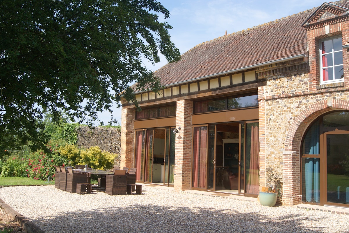 Framúrskarandi bústaður við Château du Blanc Buisson í Eure. Gamalt víggirt hús byggt 1290. Á þessum einstaka og óspillta stað hafa eigendurnir sett upp gamla vagn sem bjarta og mjög þægilega gistingu með nútímalegum innréttingum. Þú getur bragðað á kyrrðinni á staðnum og rakið sögu þessa einstaka staðar. Nánari upplýsingar er að finna á síðunni okkar. 12 hektara flokkaður garður - upphitað útisundlaug.