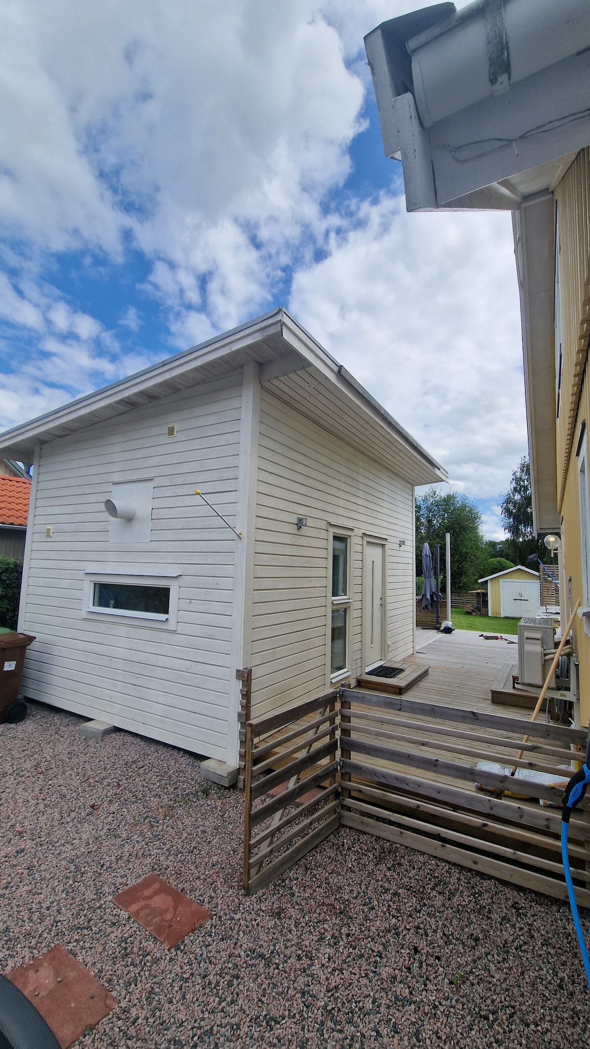 Lítið, notalegt hús á einkaeign með sérinngangi í miðborg Örsundsbro. Góður svefnsófi fyrir 2 fullorðna og hjónarúm í risinu. Sturta, þvottavél, salerni, eldavél, ísskápur ,örbylgjuofn og kaffivél eru í húsinu. Öruggt svæði. Rafbílahleðsla er í boði á bílastæðinu fyrir utan dyrnar ef þörf krefur gegn aukagjaldi. Um það bil 100 metrar eru í rútuna til að flytja milli Västerås, Uppsala og Bålsta. Verið velkomin