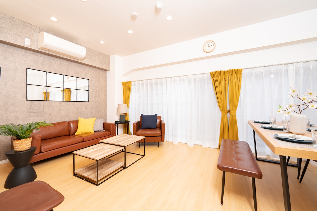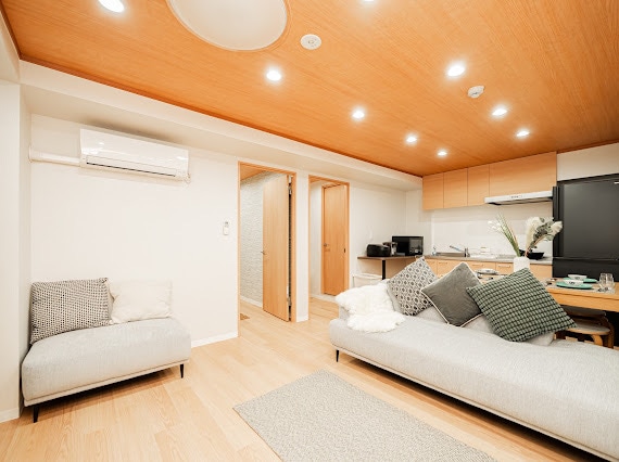 走进这间位于东京墨田区、晴空塔附近的一楼新公寓,浅木色的空间与柔和灯光交织,带来放松与温暖的居住体验。 房源布局 • 宽敞客厅 舒适沙发与电视,让旅途的片刻闲暇变得轻松愉快。 • 开放式厨房 配备基础厨具、餐具、电热水壶、冰箱、微波炉等家电,适合偶尔动手做一顿温馨的家常饭。 • 两间独立卧室 各配备 1.6m × 2.0m 的大双人床,柔软舒适,布置清新现代,让人一进门就倍感放松。 • 卫浴设备 • 干湿分离设计,保持空间整洁清爽。 • 设有浴缸与独立淋浴间,可在旅途中舒缓身心。 • 双洗面台设计,让早晚梳洗更高效。 • 配备一次性牙刷、吹风机等基础洗漱用品。 • 洗衣机带烘干功能,出差或长住也能轻松应对洗衣需求。 舒适便利的地理位置 • 步行范围内有便利店、超市、咖啡厅、地道日式餐厅。 • 步行约3分钟即可到达东京晴空塔与晴空塔城购物中心 • 交通便利,可轻松前往浅草、上野、秋叶原等热门区域 房源特色 • 全新装修,温馨明亮 • 双卧设计,适合家庭、情侣或朋友同行 • 一楼户型,无需爬楼,出入方便 • 免费寄存行李室