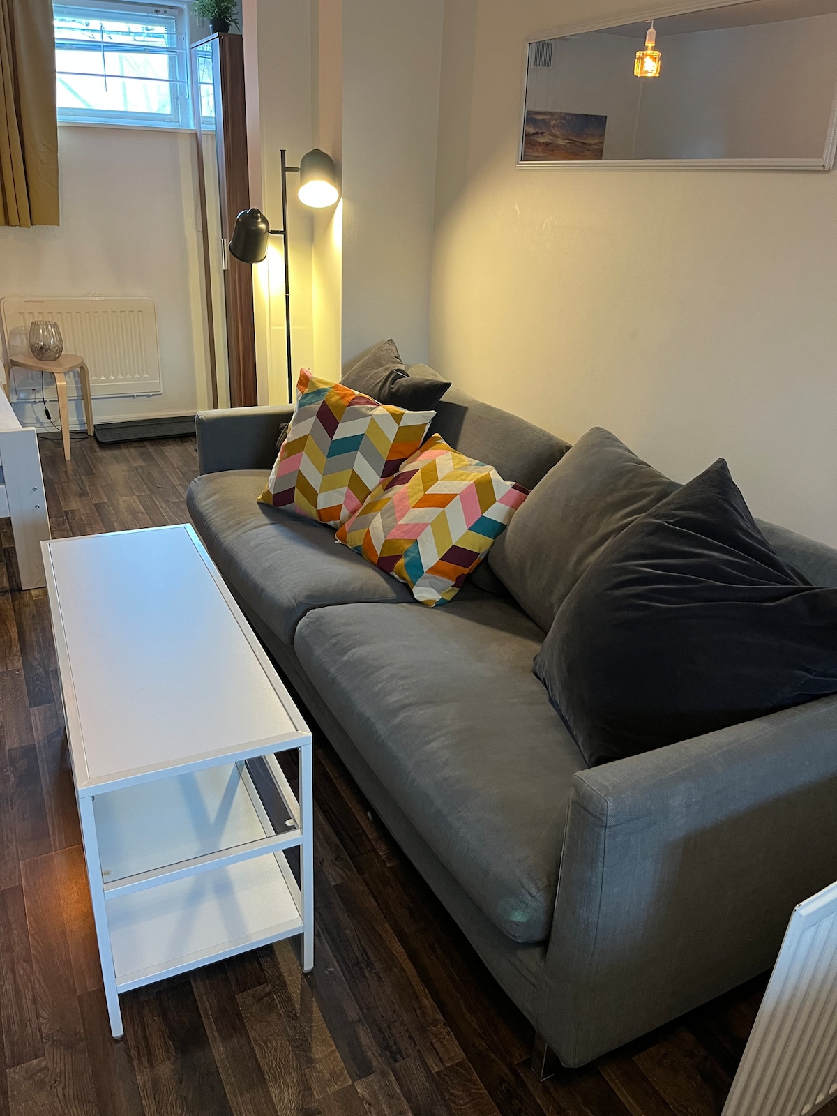 Íbúð með garði. 10 mín frá neðanjarðarlest