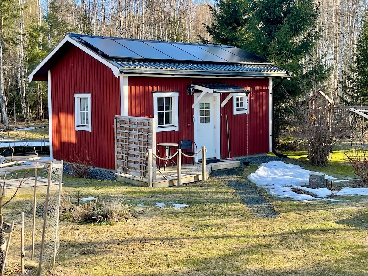 Heimsæktu kyrrðina í fallega bústaðnum frá 18. öld sem er staðsettur á býlinu Holmen. Þessi friðsæli staður er í 30 mínútna fjarlægð norðaustur af Uppsölum, tvöfaldur kofi með tveimur inngöngum. Nýlega endurnýjað eldhús og svefnherbergi, nýuppsett varmadæla og loftræsting. Sturta og þvottavél í boði. Verönd er í boði og býlið er afskekkt við hliðina á skóginum og fallegum ökrum. Við húsgarðinn er hægt að leggja nokkrum bílum.