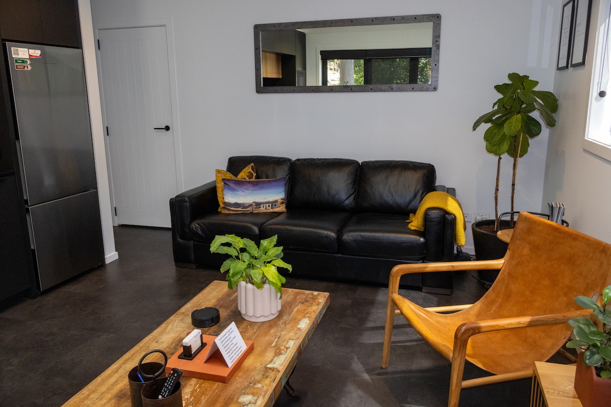 We are located within the Historic Goldmining Village of Clyde, Central Otago. Only 5 minutes walk to award winning Cafes & Restaurants. Our newly built stylish, temporary apartment is warm, sunny, & surrounded by an established garden with 80 year old fruit trees. We have a fully functioning kitchen, an underfloor heated tiled bathroom, with full bath to ease those aching muscles after a long ride on the local Rail Trails. Two super comfy Super King beds.