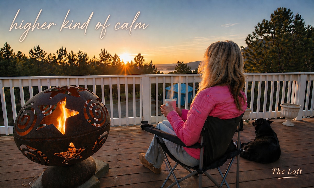 Fulluppgerður opinn hugmyndaklefi. Er með 3 einkasvefnherbergi, stórt sér kojuherbergi með aðskildri stofu með 3 kojum í fullri stærð, opnu eldhúsi, fjölskylduherbergi og 3 fullbúnum baðherbergjum . Úti er falleg yfirbyggð verönd með grilli, heitum potti og nægum sætum til að njóta stórkostlegs útsýnis. Rúmar 8-12 þægilega. Garðurinn er núlllagaður, þar á meðal torfuð svæði fyrir grasflöt og eldgryfju utandyra. REYKLAUS kofi og engin gæludýr.
