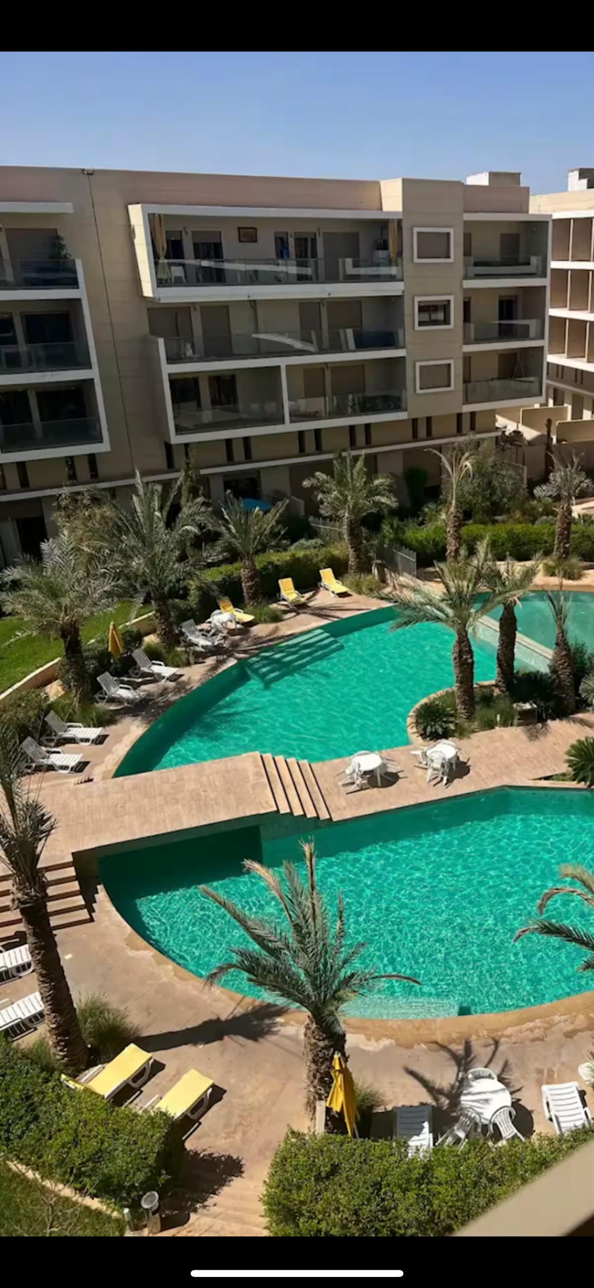 Íbúðin er staðsett í hjarta fágætrar, öruggar íbúðarbyggingu sem opin er allan sólarhringinn (Pearl Garden) og býður upp á útsýni yfir sundlaugina og stórkostlegan innigarð sem nýta má að fullu frá veröndinni. Nýlega uppgerð og vandlega innréttuð í nútímalegum og rómantískum stíl í fullkomnu samræmi við hágæðahönnun húsnæðisins. Eignin er staðsett í 3 mín frá stórmarkaðnum. Marjane 11 mínútur frá gueliz 10 mínútna fjarlægð frá Jardin Majorelle 16 mínútur frá leynigarðinum 17 mín frá Jemaa El Fina Square