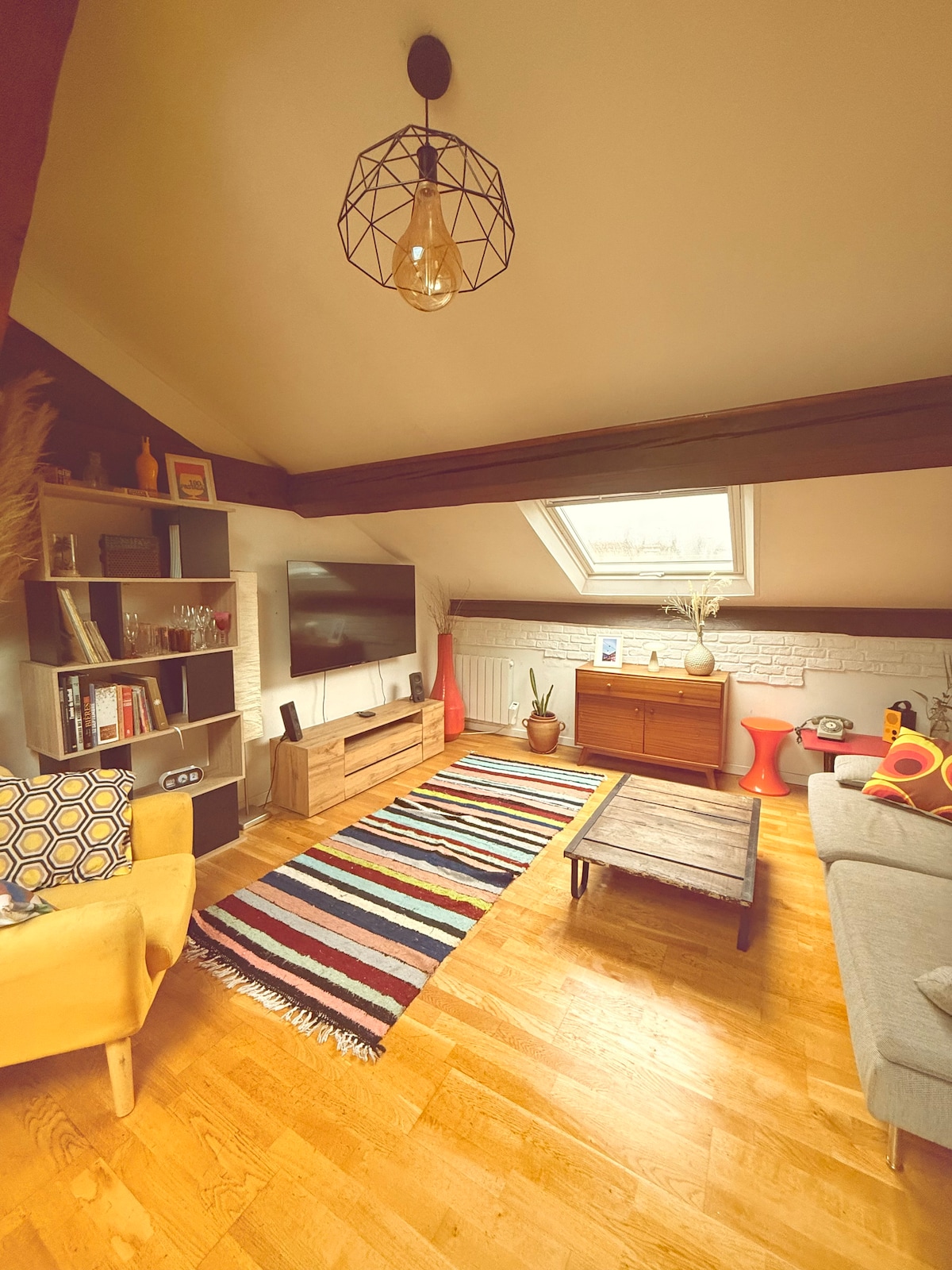 Verið velkomin í litla listræna frumskógarheiminn minn. Ég vil koma með þennan óhefðbundna stað fyrir framan hina miklu fresku Lyonnais og bakka Saône. Iðnaðarþak, franskt loft og afskornar steinsúlur eru sál þessa gistirýmis. ATHUGAÐU að þessari íbúð verður deilt með litlum gráum ketti sem heitir Modjo sem þú þarft að hugsa aðeins um 🐱
