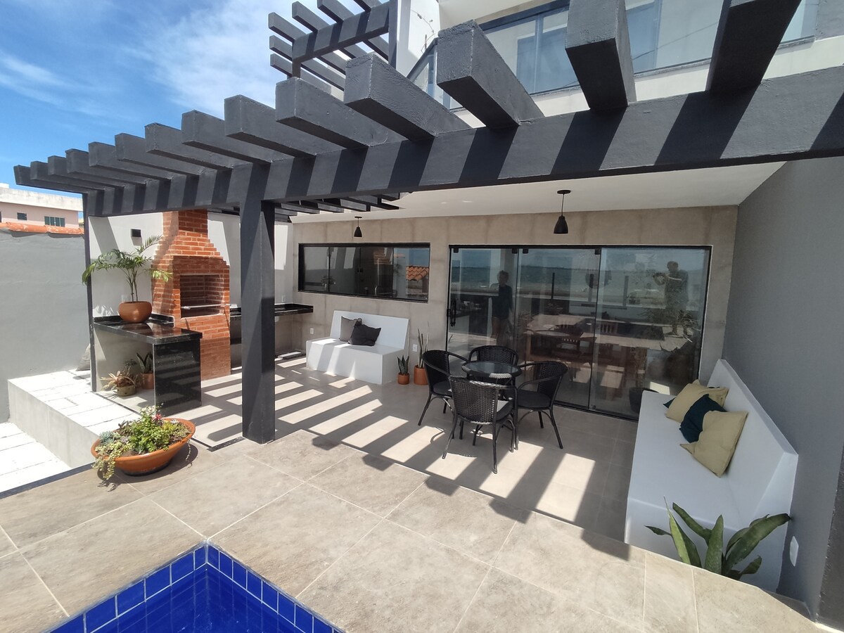 Í borginni sem kallast brasilíska Karíbahafið, eina íbúðarhúsið í Arraial do Cabo með fullkomnustu innviðum og snýr að ströndinni. Multi-íþróttavöllur, sundlaug með HEILSULIND (nuddpottur) og strönd, úti líkamsræktarstöð, líkamsræktarstöð, þurr- og gufubað samþætt við sundlaugina, kvikmyndahús, leikjaherbergi, leikfangasafn, setustofa. Lifðu ógleymanlegum stundum á þessum einstaka og tilvalda stað fyrir fjölskyldur.