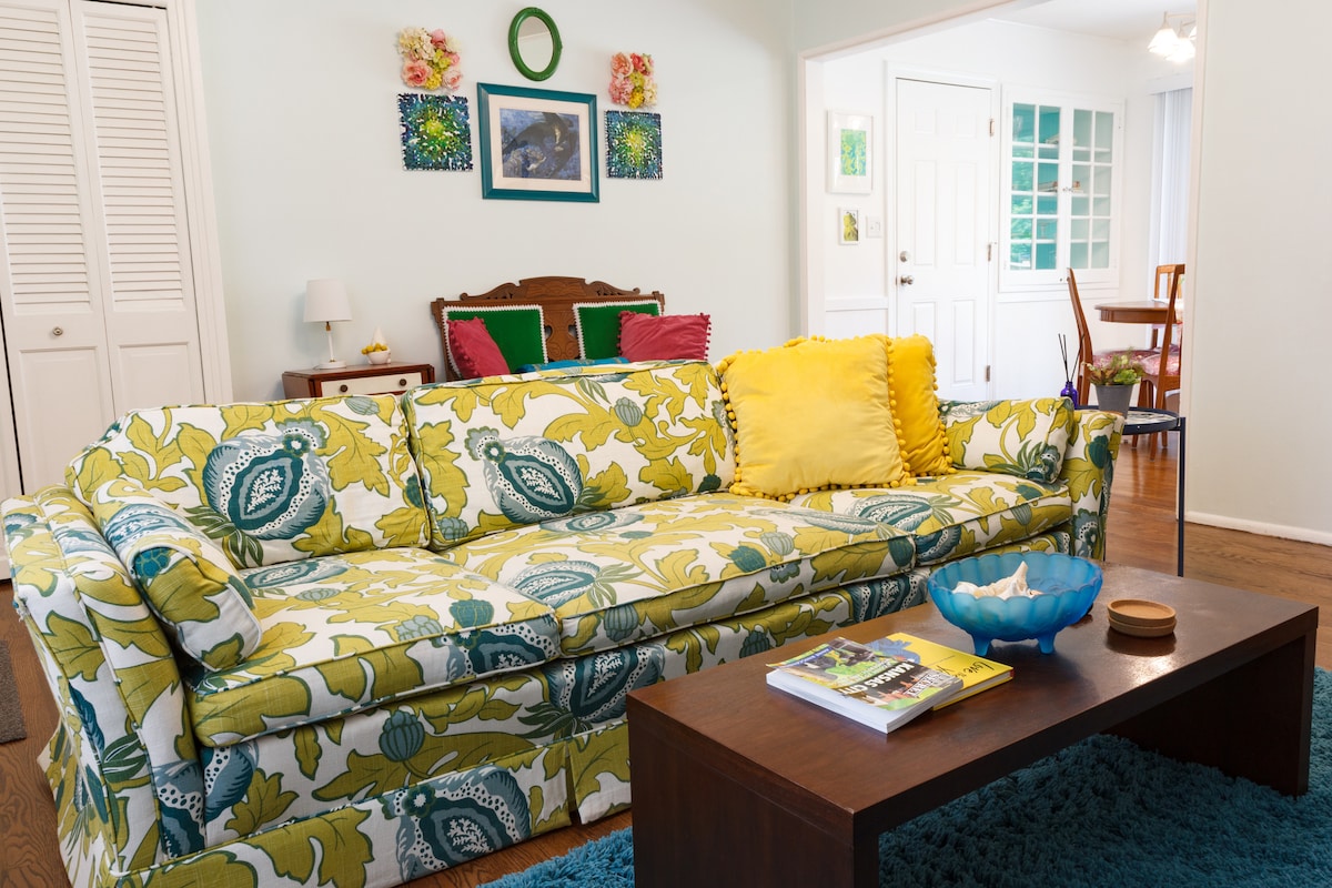 - Dásamlegt hús á stórri lóð (ekki gestahús/bústaður) - 110 feta heimreið - Svefnpláss með queen size rúmi (þægileg memory foam dýna) - Stofa með 40" snjallsjónvarpi, svefnsófa og auka sætum - Fullbúið eldhús með borðkrók - Fullbúið baðherbergi með baðkari/sturtu - Sunroom m/ setusvæði og dagrúmi - Þvottavél/þurrkari - Skrifstofusvæði m/ skrifborði - Dúkur m/sætum utandyra og grilli - 10 mín frá Plaza, 15 mín frá Westport og miðbænum, 25 mín frá flugvellinum - $ 25 gæludýragjald