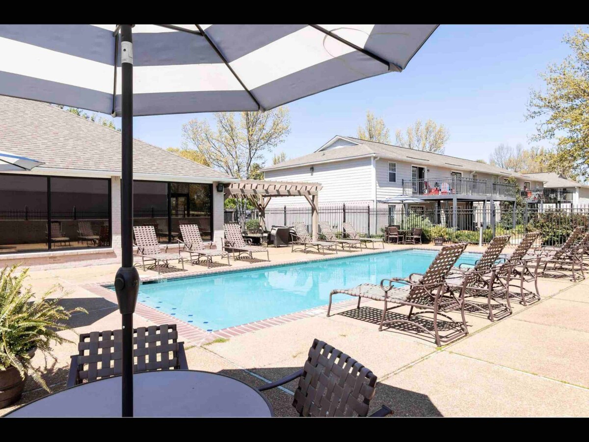 Komdu og njóttu þessarar nýuppgerðu 1 baðherbergja íbúðar á fullkomnasta stað. The Blue Jay er í innan við 1,6 km fjarlægð frá Oxford Square, The University og Baptist Hospital. Íbúðin er með líkamsræktaraðstöðu og sundlaug á staðnum. Ókeypis bílastæði eru einnig í boði. Eignin: >Tvö svefnherbergi >Eitt baðherbergi >Þráðlaust net í boði fyrir gesti >Sjónvarp er í öllum herbergjum með Roku möguleika og streymi >Queen-rúm í hverju svefnherbergi >Fullbúið eldhús með nýjum pönnum, diskum, hnífum, brauðrist, kaffivél og fleiru.