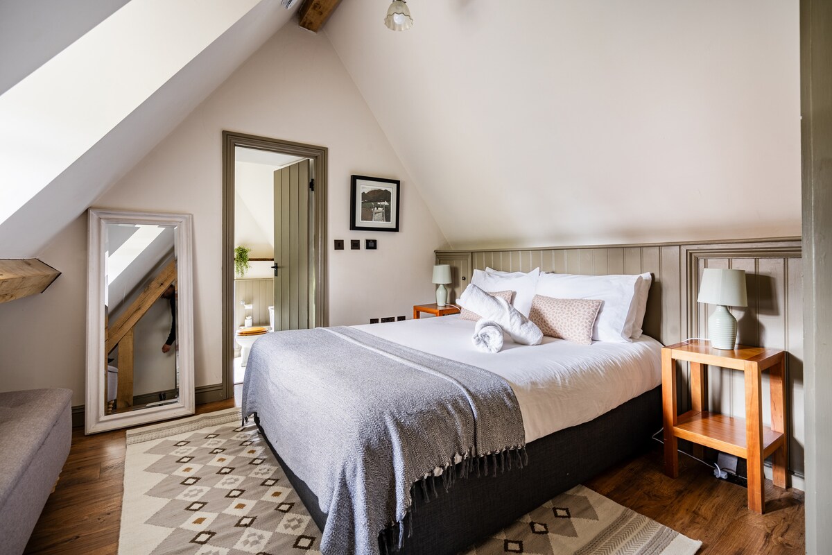 A country hideout above our detached oak framed barn. Stylishly furnished in a rustic luxury theme ensuring this little retreat ticks all boxes to make your stay comfortable & cosy! Very spacious and an ideal place to come and relax for a romantic countryside break. Fantastic pub just 50m from the doorstep that serves food most days (please check) but there is a very well equipped kitchen should you like to cook for yourselves. Easy access to Oxfordshire best countryside walks too.