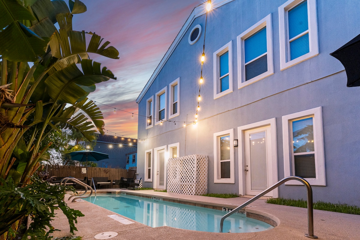 Slakaðu á og hladdu í Aries Breeze, fallegu raðhúsi á South Padre Island! Þessi eyjaferð var endurbætt árið 2020 og uppfærð með glænýjum, nútímalegum húsgögnum árið 2023. Njóttu tveggja mínútna göngufjarlægð frá ströndinni, uppáhalds kaffi- og ísbúðum eyjunnar, Wanna Wanna Wanna (vinsæll bar og grill við ströndina) og fleira! Njóttu þess að heyra róandi öldurnar um leið og þú nýtur eins af þremur setusvæðunum utandyra, þar á meðal tveimur svölum með sjávarútsýni að hluta og einkasundlaug.