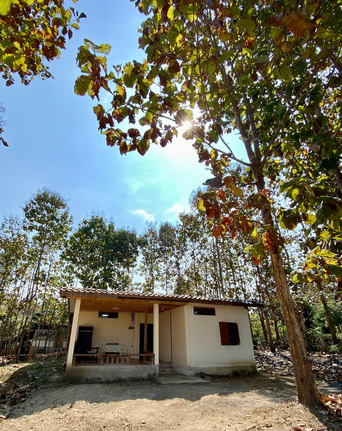 Við erum með 4 tekk viðarbústaði með þægilegum rúmum, sérbaðherbergi með heitum sturtum+viftu og moskítóneti. Við ræktum lífræna ávexti og grænmeti á staðnum til að bjóða upp á Sweet & Salty Café/veitingastað á staðnum þar sem þú getur fengið bakarí, brauð, taílenskan og Shan staðbundinn mat ásamt kaffi og te Við erum með 4 tekk viðarbústaði með þægilegum rúmum, sérbaðherbergi með heitum sturtum+viftu og moskítóneti.