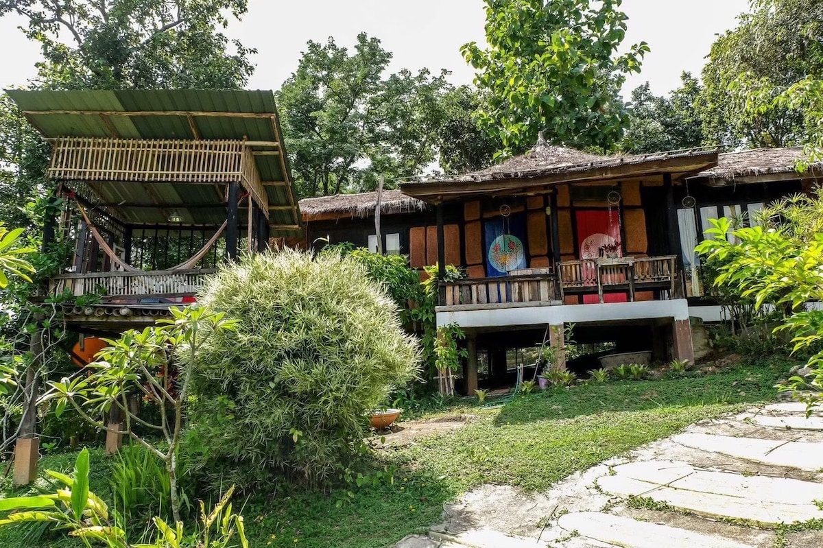 Verið velkomin í The Jungalow. Einstakur og kyrrlátur staður í töfrandi fjöllum Pai. Sökktu þér niður í náttúruna og vaknaðu eftir friðsælan nætursvefn til að njóta útsýnisins! Jungalow er rúmgott en-suite einkaheimili með mjög þægilegu king-rúmi, litlum bar/ísskáp, skrifborði, viftu og garði umkringdum bananaplöntum. ATHUGAÐU AÐ VIÐ ERUM 3 KM UPP Á MÓTI BÆNUM, ÞÚ ÞARFT AÐ LEIGJA OG HJÓLA Á VESPU/MÓTORHJÓLI EF ÞÚ VELUR JUNGALOW.