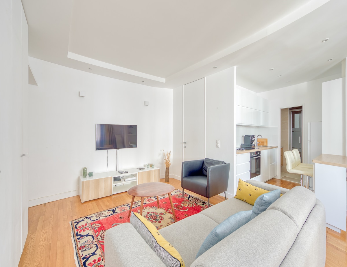 Þetta 31 m2 stúdíó var endurnýjað að fullu árið 2021 í hjarta Parísar, steinsnar frá Champs Élysées og Parc Monceau. Þetta stúdíó er með: - Tvíbreitt rúm - Skápar, straujárn, - Snjallsjónvarp - Þráðlaust net - fullbúið eldhús - þvottavél, þrif/þurrkun, þurrkgrind - baðherbergi með stórri sturtu, snyrtingu, hárþurrku - vinnurými með skrifborði Nokkrar mínútur að ganga: neðanjarðarlest, bakarí, veitingastaðir, þvottahús, smámarkaðir, apótek.