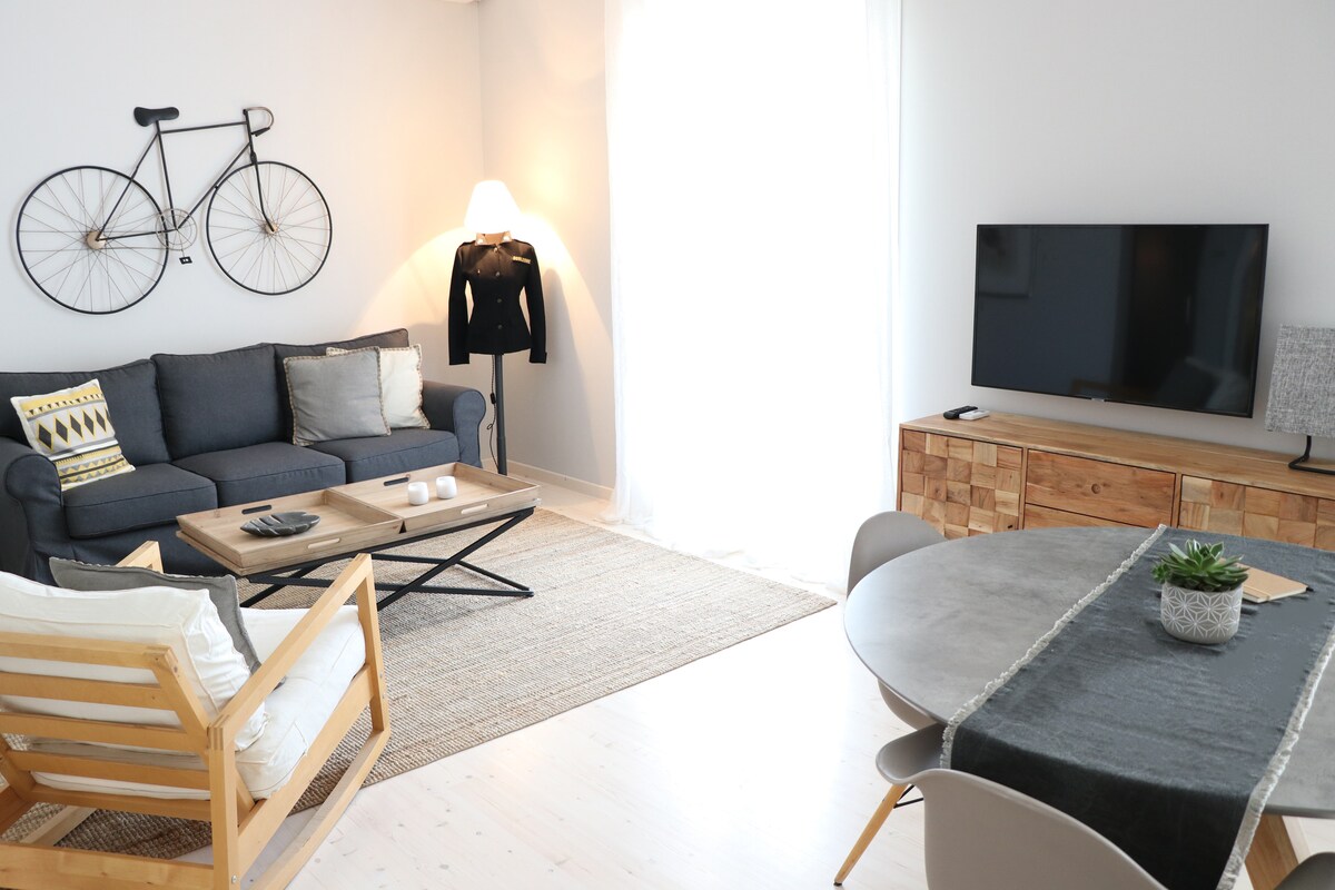 Íbúðin okkar er NÝ, endurnýjuð í júní 2025. Það er eitt svefnherbergi með mjög þægilegu hjónarúmi og nýju eldhúsi þar sem þú getur fundið allt sem þú vilt til að elda hádegisverð/kvöldverð/brekfast. Íbúðin er nútímalega innréttuð og viðskiptavinirnir geta slakað á yfir hátíðarnar. Það eru ókeypis bílastæði við veginn rétt fyrir framan dyrnar á íbúðinni. Aðeins 800 m (10 mínútna ganga) frá miðbæ Naplio, 1 km (15 mínútna ganga) frá Sintagma-torgi og 3 km frá kastalanum Palamidi.