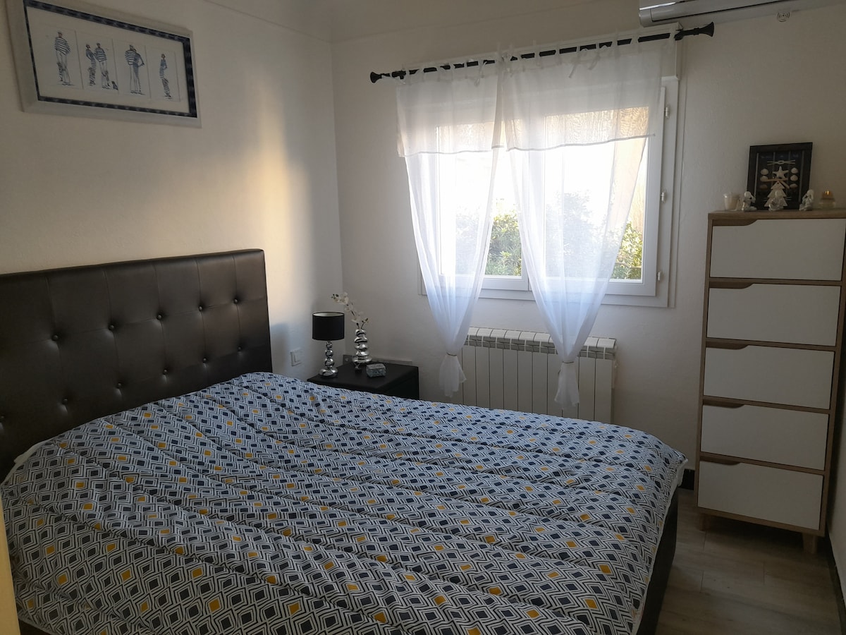 ! Þessi fjölskylduíbúð er EINSTÖK með SJÁVARÚTSÝNI. ! Staðsett Í KYRRÐINNI, í nokkurra mínútna göngufjarlægð frá STRÖNDINNI í Les Roquilles (Carnon). ! Ókeypis bílastæði *Gistiaðstaðan* 2 svefnherbergi með umbúðum, rúm 160 og 2x90 NÚTÍMALEGT eldhús, spanhelluborð, UPPÞVOTTAVÉL, stór ísskápur, nespresso-kaffivél, ketill LÍNÞVOTTAVÉL, RÚMGÓÐ og LÝSANDI vistarvera þar sem þú getur hvílst eins og best verður á kosið. WIFI breiðband ! Baðherbergi með baði ! 3. hæð (engin lyfta)