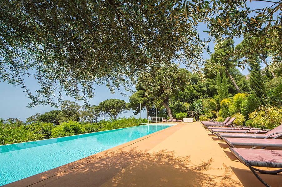 Blá og hvít bústaður með fallegri laug í íburðarmiklum garði með appelsínu-, sítrónu- og ólífutrjám. Það er falleg verönd þar sem hægt er að snæða á sumarkvöldum. Það er á milli sjávar og fjalls: Sferracavallo - Mondello og Monte Gallo, friðlandið. Bústaðurinn er mjög vel búinn og er með upphitun á veturna og loftkælingu á sumrin.