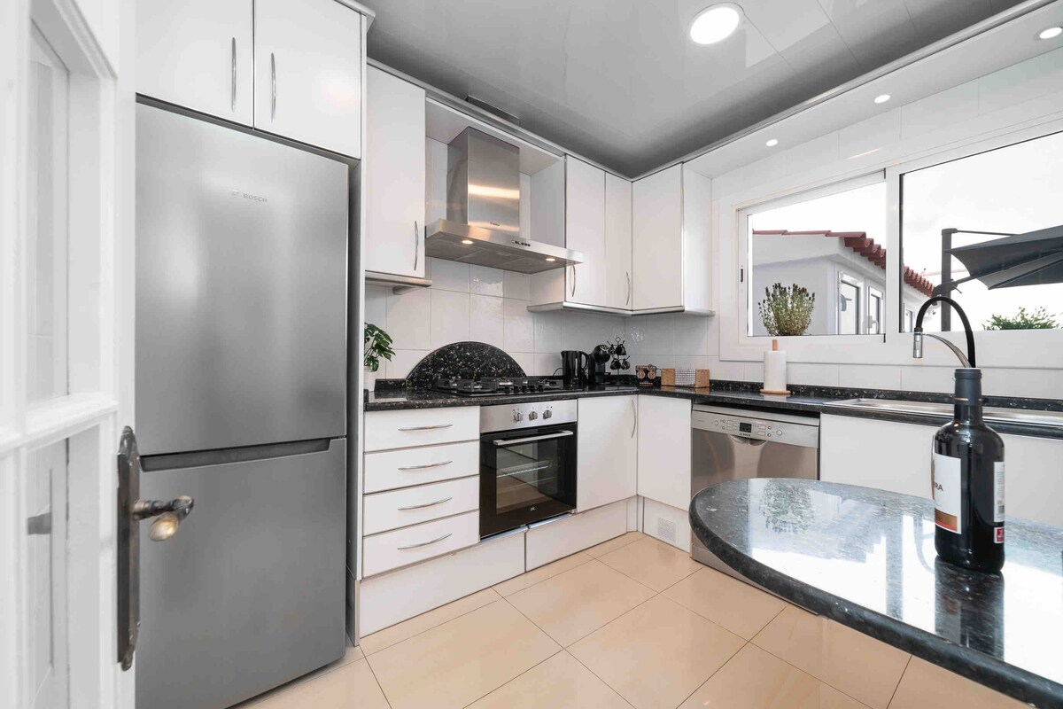 Njóttu glæsileika og þæginda í þessari dásamlegu villu með miklum rúmgæðum á mjög rólegu svæði með útsýni yfir hafið og fjöllin. Fullbúið með þremur rúmgóðum svefnherbergjum,leikherbergi þar sem börnin geta leikið sér, þrjú baðherbergi með sturtu og baðkeri og glæsilegt eldhús. Í garðinum er stór einkamyndína og mjög þægileg verönd við hliðina á útieldhúsi með grilli og líkamsræktaraðstöðu með vélum . Það hafði aldrei verið auðveldara að taka það úr sambandi!