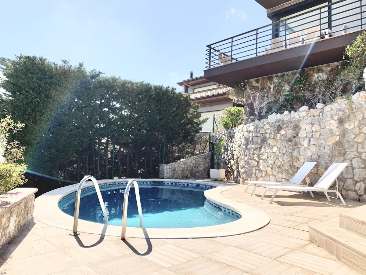 Lúxus lítið hús staðsett í miðri náttúrunni aðeins 24 mínútur frá Barcelona og 25 mínútur frá T1 flugvellinum í Barcelona. Búið upp á 34 gráðu upphitaða laug og útijakúzzi. Hún samanstendur af afslappandi svæði þar sem þú getur notið friðar og róar. Bannað er að halda veislur og vera með hávaða á kvöldin. Virða verður hvíld nágrannanna. Stórt eldhús og borðstofa með útsýni yfir sundlaugina. Hannað til að gera nokkra ógleymanlega daga! Ókeypis bílastæði fyrir framan húsið.