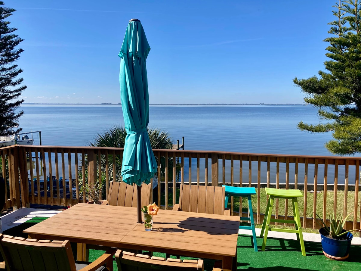 Verið velkomin til Casamigos! Stórkostlegar sólarupprásir og sólsetur bíða þar sem þú nýtur endalauss útsýnis yfir vatnið frá næði svefnherbergisins eða sextíu feta verönd, 300 feta bryggju og næstum öllum innréttingum. Róðrarbretti, fiskur eða synda með höfrungum, manatees, pelicans og stökkfisk frá einkaströndinni þinni (á Indian River - ekki hafið) þegar þú slakar á í friðsælum og lúxus einkavin í paradís. Super hratt WIFI ef þú þarft að vinna meðan á dvöl þinni stendur! Aðgengi fyrir fatlaða. Gasgrill.