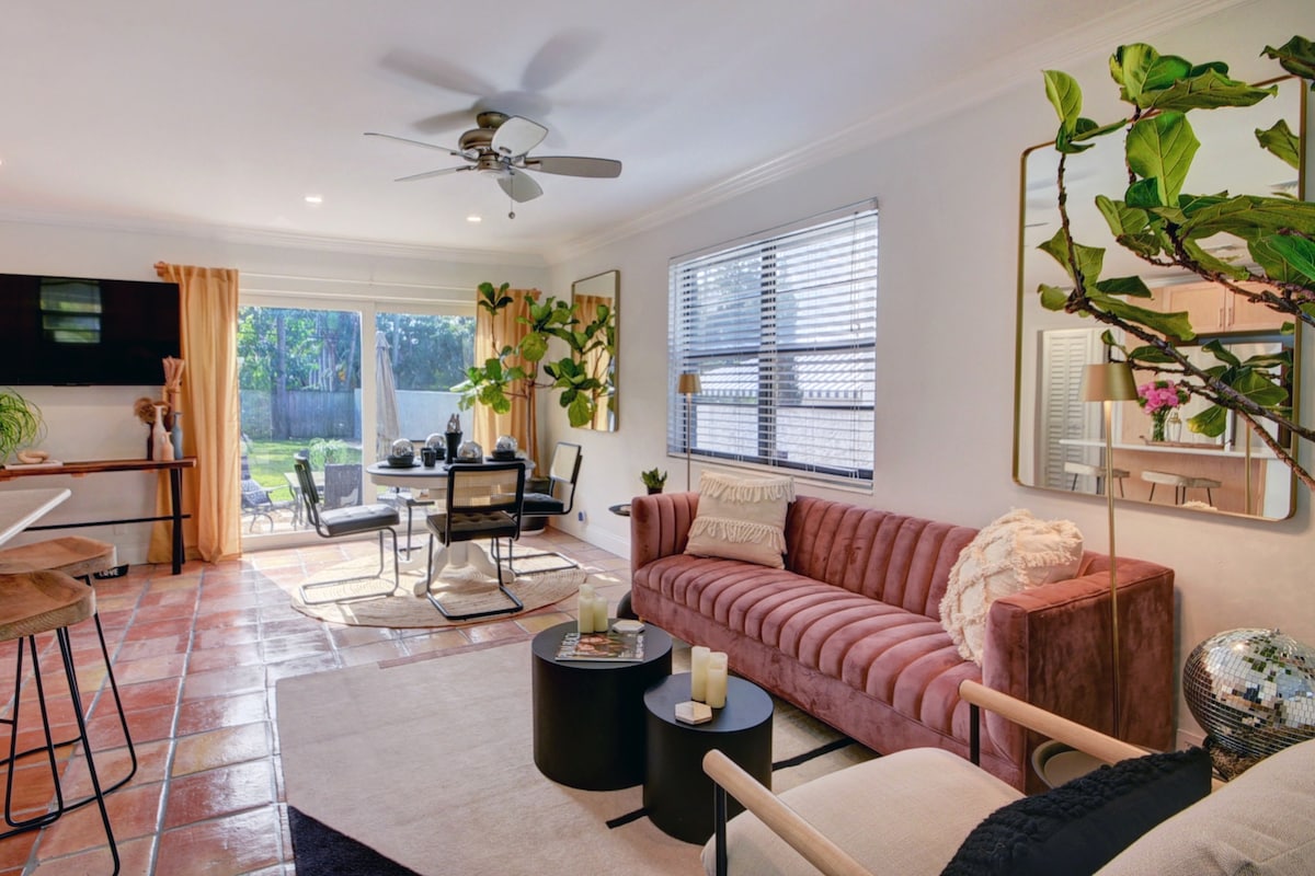 Þetta er falleg, nýlega uppgerð íbúð á jarðhæð í göngufæri frá vatnsbrautinni. Íbúðin er staðsett í hjarta hins ástsæla sögulega hverfis El Cid á West Palm Beach og er í um 1,5 km fjarlægð frá ströndinni ásamt verslunum og veitingastöðum í City Place. Þessi þægilega íbúð hentar bæði fyrir vinnu og frí. Það er fullbúið með einstökum innréttingum og húsgögnum og er fullkominn staður til að slaka á og slaka á.