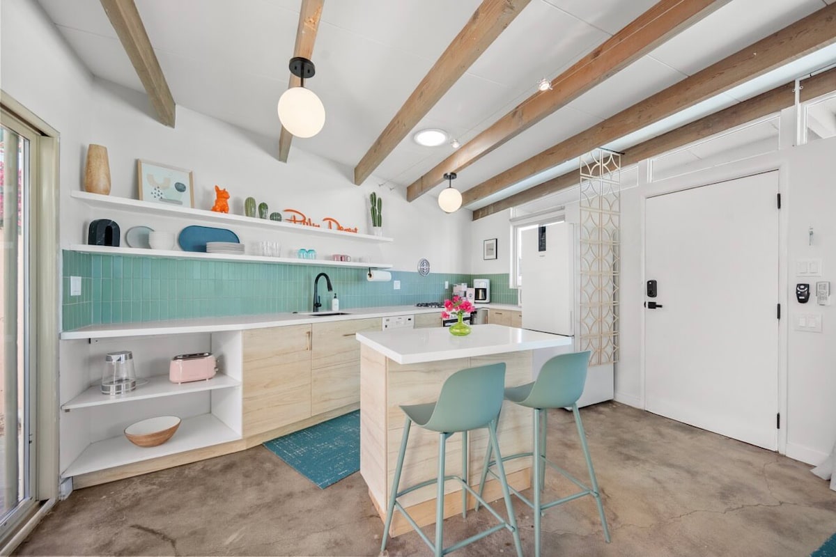 Njóttu endurnærandi gistingar á þessu heimili frá miðri síðustu öld, í göngufæri við Paseo, Indian Wells, La Quinta og alla þá ánægjulegu hluti sem eyðimörkin hefur að bjóða. Þessi fullkomlega endurnýjun var lokið árið 2022 með mikilli nákvæmni og áherslu á að viðhalda upprunalegri miðaldarútlitinu á heimilinu. Einn hundur er í lagi. ☆☆☆Ertu að leita að gistingu fyrir Coachella/Stagecoach? Húsið er í 5 mínútna göngufæri frá skutlustoppi og í 20-25 mínútna akstursfjarlægð frá skemmtigarðinum.☆☆☆ Leyfisnúmer: STR2022-0222