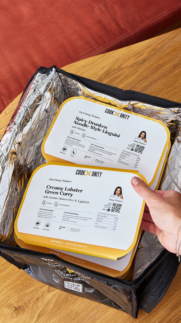 Kokkurinn Cat Cora býður upp á ríkulegar og nærandi máltíðir sem eiga sér stað í grísku arfleifð hennar og heilsusjónarmiðum. Í boði CookUnity: máltíðum frá verðlaunuðum kokkum sent heim.