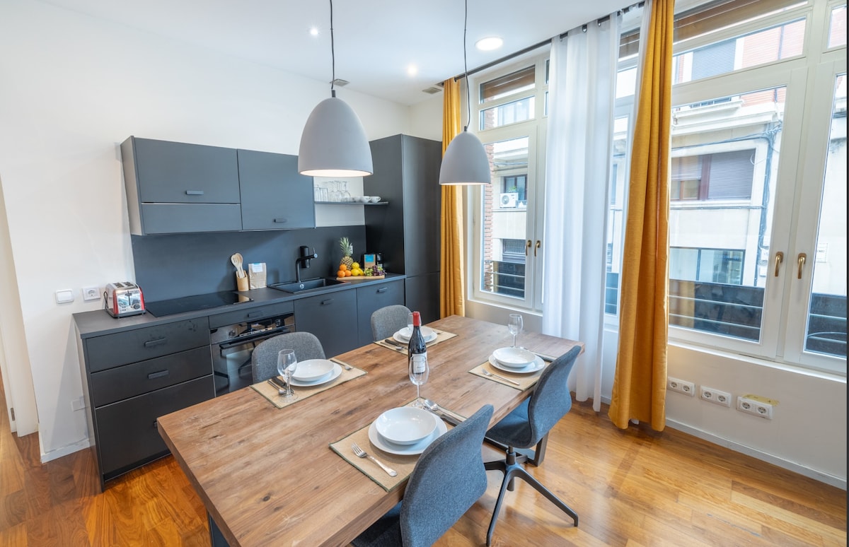 Njóttu sjarmans í þessari nútímalegu og rúmgóðu íbúð sem er alveg uppgerð. Þetta er fyrsta hæð með lyftu staðsett í 100 ára gamalli byggingu sem nýlega var endurhæfð. Staðsett í Calle Descalzos, einn af rólegustu í borginni og nokkra metra frá merkustu stöðum miðalda borgarinnar Pamplona. A 5 mínútna göngufjarlægð frá Jardines de la Taconera, fallegasta garðinum í Pamplona. Hannað árið 1830, í frönskum stíl, þar sem lítill dýragarður stendur upp úr.