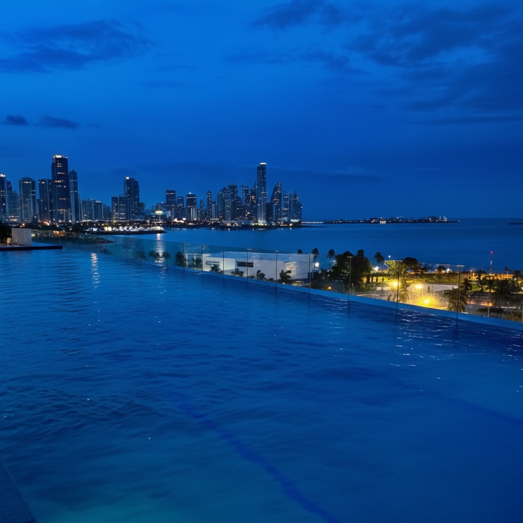 Glæný íbúð með 1 svefnherbergi og óviðjafnanlegu sjávarútsýni. Njóttu endalausu laugarinnar á 9. hæð með 180 gráðu útsýni yfir nýja borgina vinstra megin og sögulega miðbæjarins hægra megin. Í 5 mínútna akstursfjarlægð frá gamla bænum þar sem finna má bestu veitingastaðina, sögulegu kennileitin og næturlífið sem Panama hefur upp á að bjóða. Örugg bílastæði á staðnum, öryggisgæsla allan sólarhringinn á staðnum, loftræsting í allri íbúðinni, háhraðanettenging, eldhús og þvottahús.