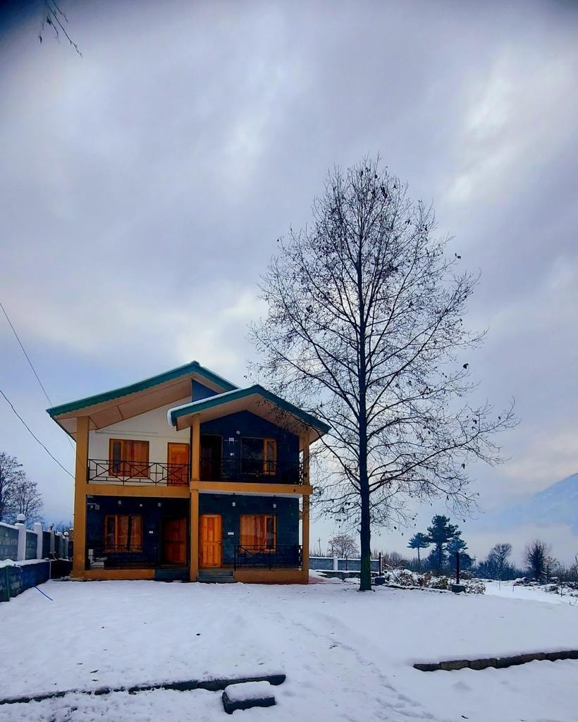 A serene cottage, with a view of snow capped mountains and surrounded by apple orchards. 🍎 It includes 2 spacious bedrooms, hall, 2 bathrooms, 1 fully furnished kitchen, Seating Area with a balcony, a garden and private parking. Also, we have food delivery available from our restaurant to the cottage. Relax with the whole group at this peaceful place to stay and get Exclusive village experience. Special Discount on Long Stay deals.