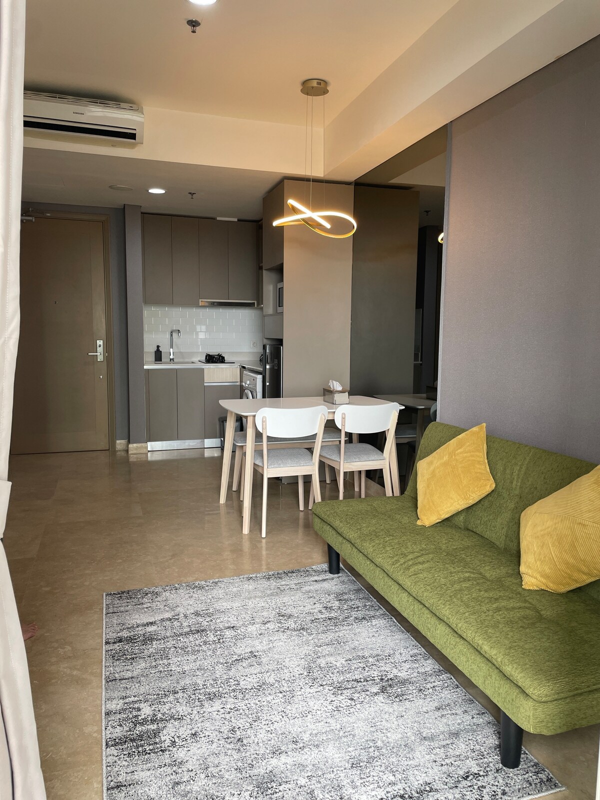 Íbúð staðsett á Pantai Indah Kapuk (PIK) svæðinu þar sem er matargerð. Margar skrifstofur, verslunarmiðstöðvar, skólar, markaðir og sjúkrahús, næturklúbbar, PIK 2. 4 mínútur í mall avenue 4 mín í rs buddha tzuchi 5 mínútur til að þrífa ferskan markað 10 mínútur í pancoran pik 14 mín. Til aloha PIK 2 18 mínútur til soekarno hatta flugvallar