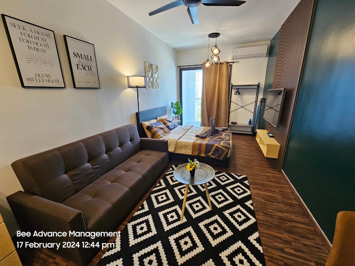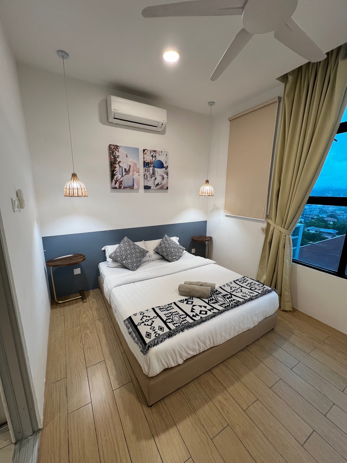 Við erum staðsett í 15 mínútna fjarlægð frá Kota Kinabalu-flugvellinum og í 20 mínútna fjarlægð frá miðborg Kota Kinabalu Það eru mörg þægindi í verslunarmiðstöðinni hér að neðan eins og verslanir, veitingastaðir og skemmtistaðir HREIÐRIÐ Stofa : Snjallsjónvarp með þráðlausu neti, svefnsófa og mjúkri lýsingu til að njóta rómantískrar dvalar eða notalegrar dvalar Eldhús : spaneldavél, lítill ísskápur, ketill, loftsteiking, diskar, skál, bollar og eldunaráhöld