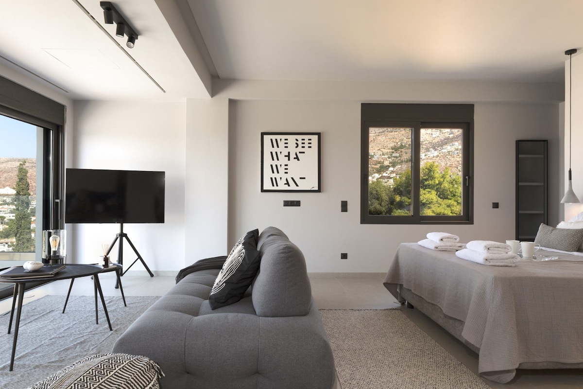 Nýuppgerð 45 herbergja íbúðin okkar er glæsileg, minimalísk en samt notaleg svo að þér líði eins og heima hjá þér. Íbúðin er hvít og fölguð og dagsbirta er full af dagsbirtu. Einkaveröndin okkar, 100 m2, veitir þér alla þá friðsæld og ró sem þú þarft í fríinu og nýtur hins stórkostlega útsýnis yfir Vouliagmeni-flóa. Nálægt ströndum, skíðaskóla, tennisvelli, körfuboltavelli, hótelum, veitingastöðum, skógi, almenningsgörðum, 30' frá miðborg Aþenu, 30' frá flugvellinum í Aþenu.