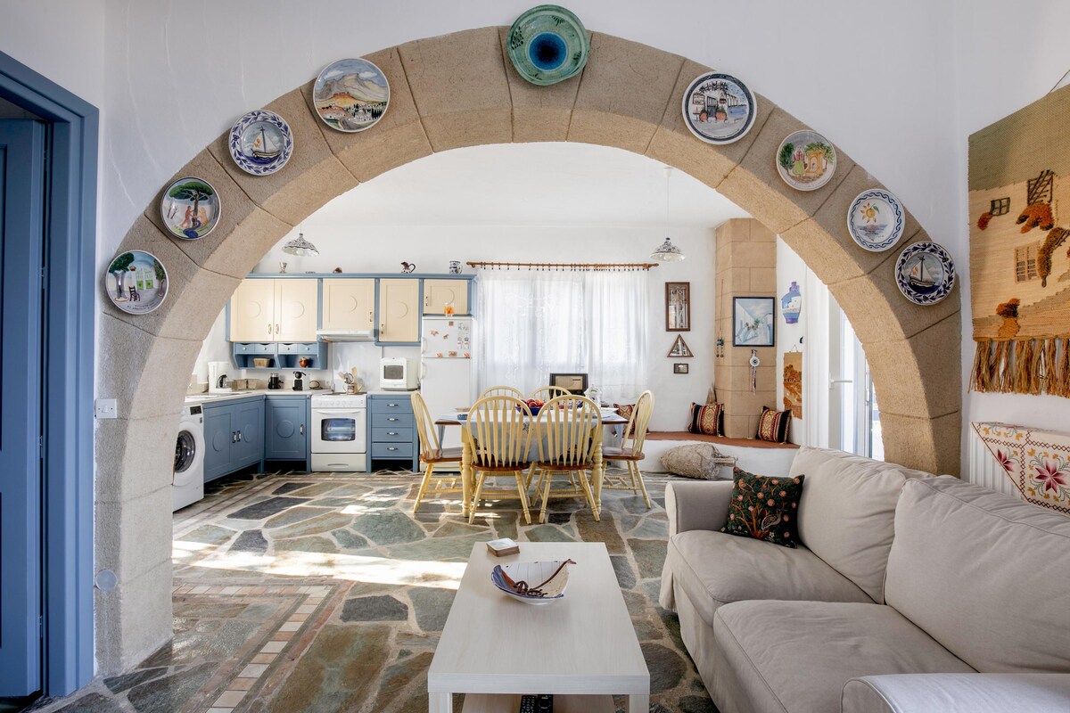 Gistingin er staðsett alveg við enda Stegna-strandarinnar og býður upp á einstakt útsýni yfir landslagið á staðnum. Það býður upp á tvö rúmgóð herbergi með loftkælingu, sjónvarpi og þráðlausu neti, fullbúnu eldhúsi og baðherbergi. Hefðbundni „sófinn“ er tilvalinn til að hvílast og arinn hans mun hita þig upp yfir vetrartímann. Einkagarðurinn með skyggða svæðinu er með útsýni yfir Stegna ströndina en sjávarsíðan er í aðeins nokkurra metra fjarlægð! Bílastæði er við inngang eignarinnar. (AMA 00000302544)