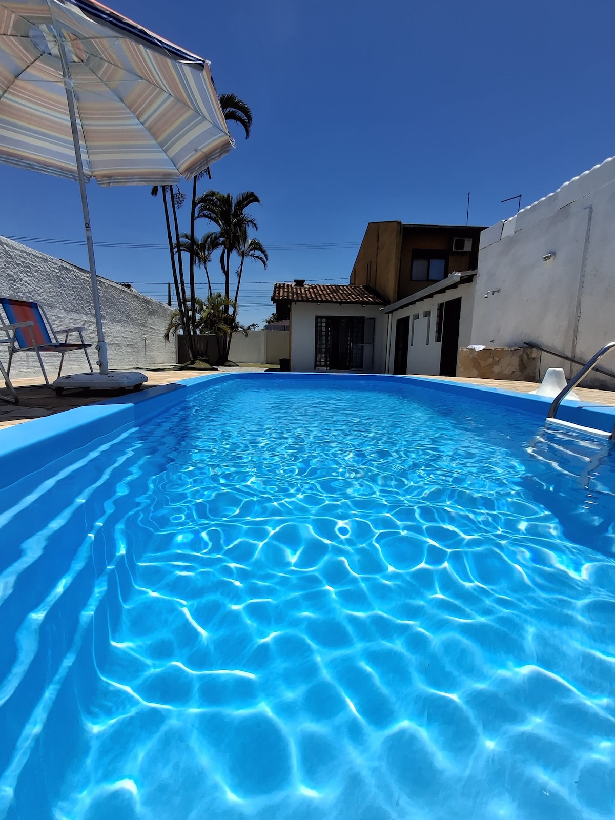 High standard 🏠 Sobrado with 260m² only 350 meters from the sea. 💤 Rúmar allt að 12 gesti í 3 stórum, loftkældum svítum og 8 þægilegum rúmum. 📺 Stofa með snjallsjónvarpi og arni fyrir notalegar stundir. 🍽️ Fullbúið eldhús: eldavél, ísskápur, örbylgjuofn og öll áhöld til að útbúa máltíðir. 7m x 3,5m 💦 laug með fossi – fullkomin fyrir hressandi og afslappandi. 🍢 Söluturn með grilli, vaski, ísskáp og grilleldavél fyrir fjölskyldu og vini.