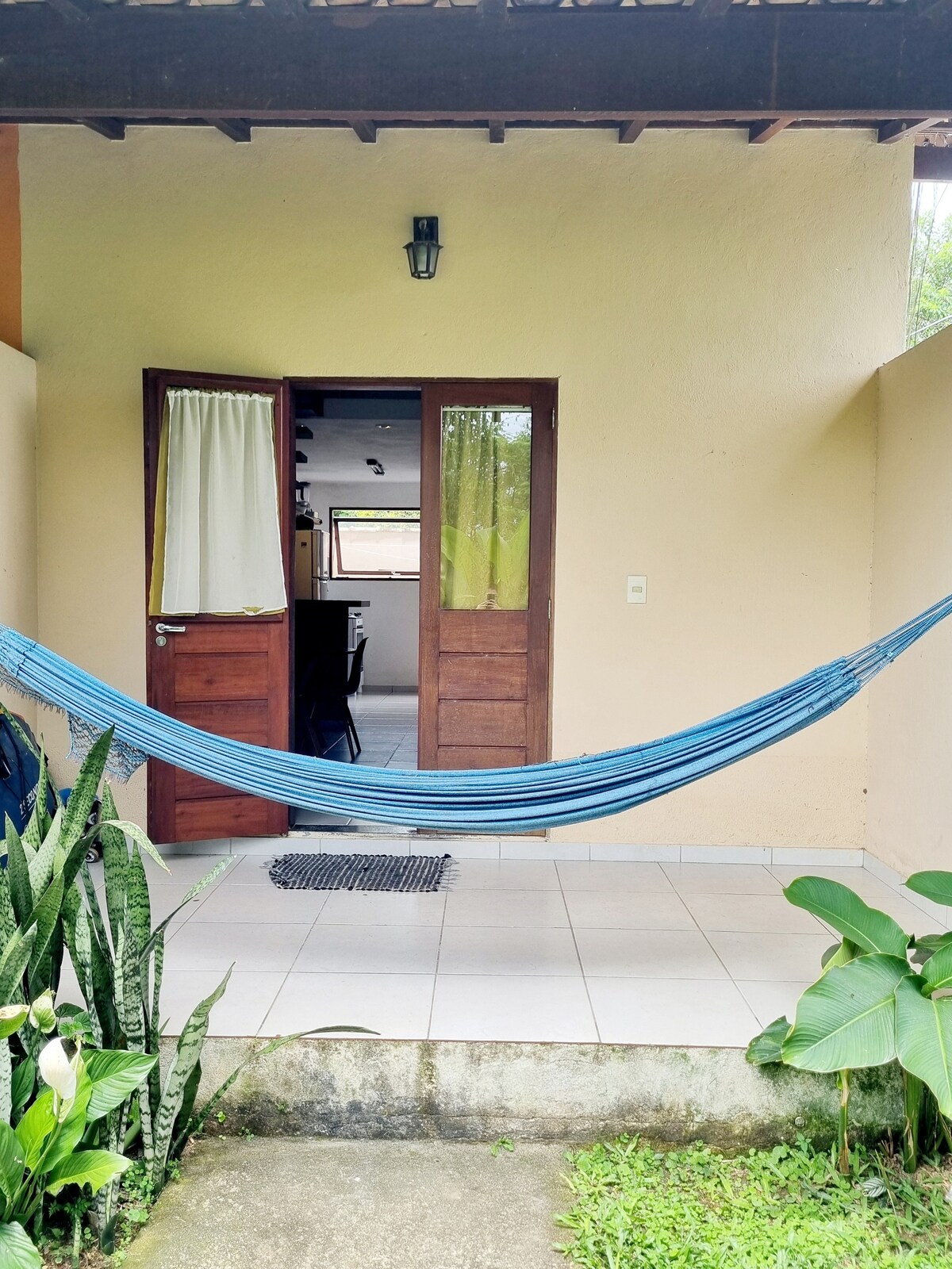 Chalet located on a quiet street, in Bairro Caborê, in a gated and secure condominium. Nálægt ströndinni og 1,5 km frá sögulega miðbænum í Paraty og hverfismarkaðnum. Hús með öllum heimilismunum fyrir þægilega dvöl. Mezzanine svefnherbergi með hjónarúmi og baðherbergi, einbreitt rúm í stofunni og baðherbergi á neðri hæðinni. Svalir með hengirúmi fyrir framan húsið og litlum garði fyrir aftan.