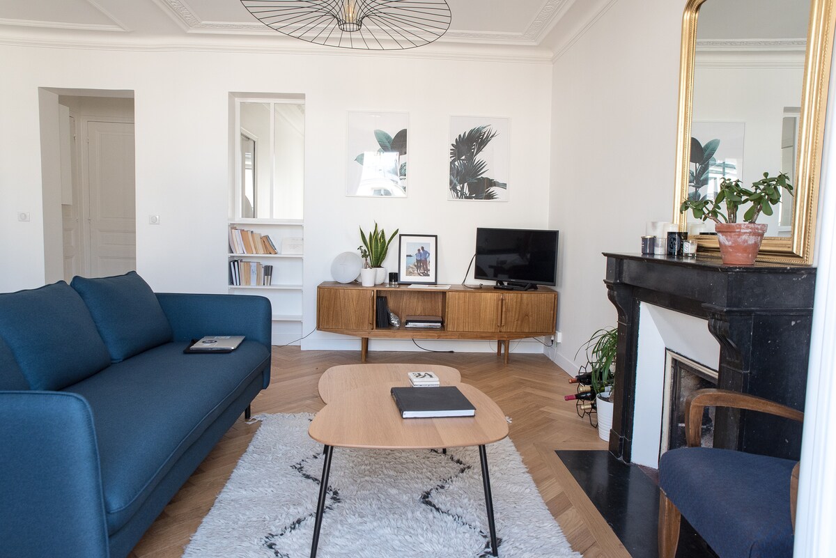 Falleg íbúð í hljóðlátri göngugötu með mörgum hefðbundnum frönskum kaffihúsum og veitingastöðum í París. Njóttu kyrrðarinnar, þægindanna og birtunnar (glugganna báðum megin) í nýenduruppgerðu íbúðinni minni á daginn og auðvelt aðgengi að öllum arrondissement frá París á innan við 30 mínútum með mörgum neðanjarðarlínum.