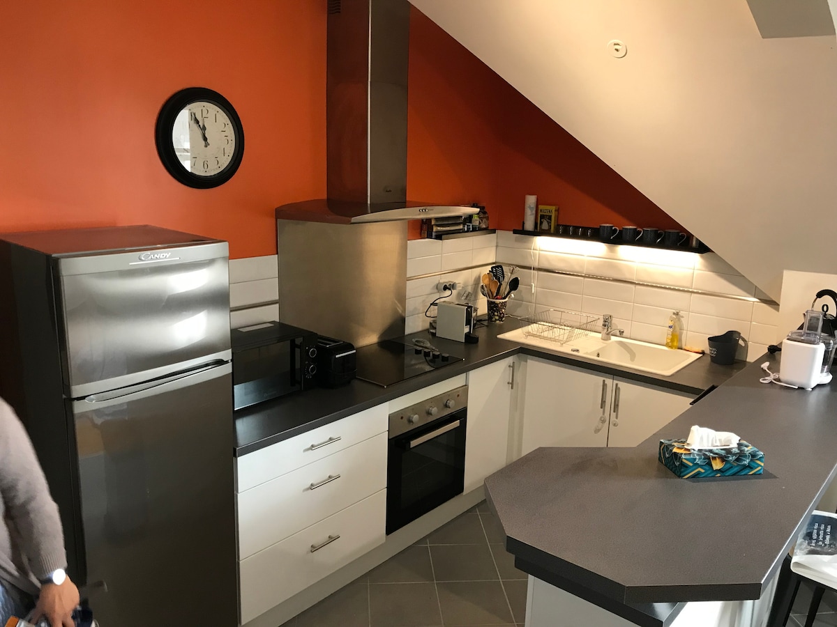 Studio de 15 m2 à 5 minutes à pied de la gare TGV. Face centre de formation SNCF. Vous profiterez d'une pièce de vie avec des tables gigognes pour dîner/travailler, TV, linéaire de cuisine avec plaques vitrocéramiques etc. Dans cette pièce de vie se trouve un lit armoire escamotable très facilement manipulable (140 x 200 cm). Dans la salle de bain, se trouve le nécessaire : douche, vasque, colonne et WC. Linge de maison et linge de toilette sont fourni !